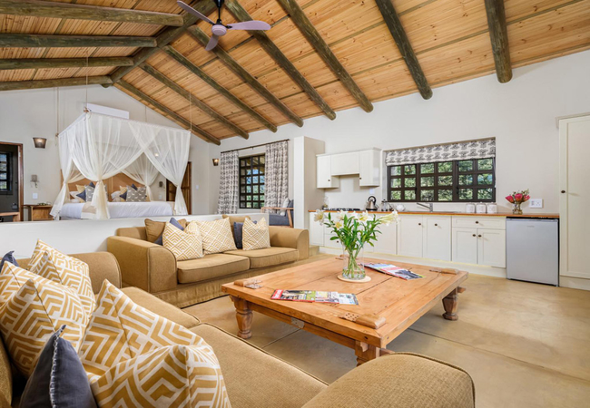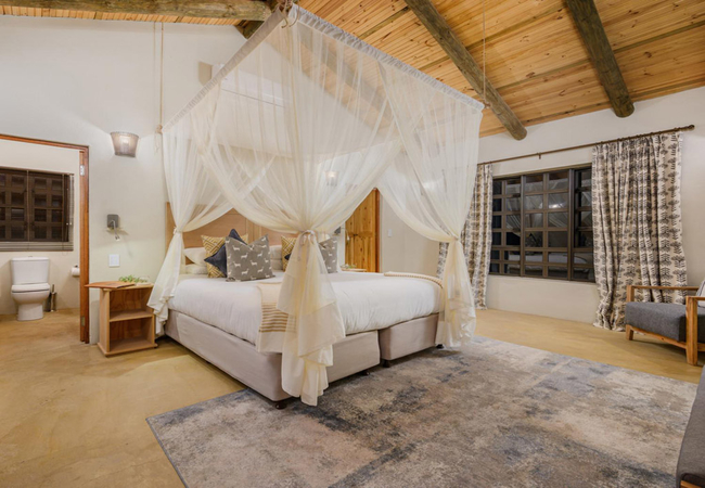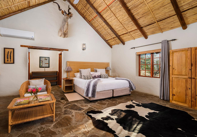 Eland Cottage is one of four beautiful stone chalets at our Lapa Lodge. This chalet has everything you will need to ensure a comfortable stay. The room has Twin/King beds and an en-suite bathroom with shower. There is a lounge area and kitchenette.