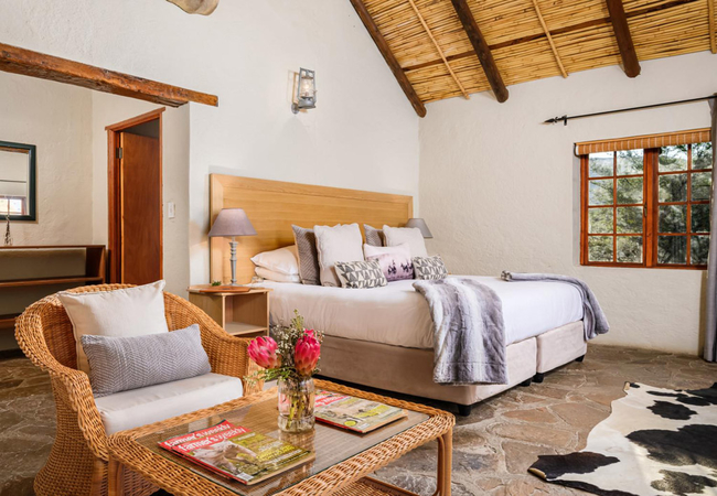 Klippy Cottage is our luxury chalet at our Lapa Lodge. This magnificent stone chalet is where comfort meets luxury at its best. The room has Twin/King beds and an en-suite bathroom with shower. There is a lounge area and kitchenette.