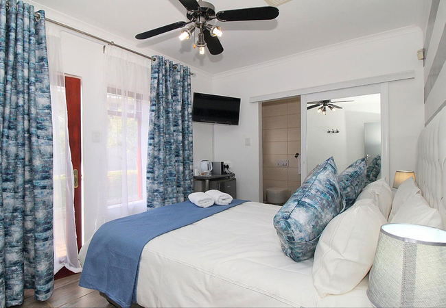 The Blue Room is a luxury room furnished with a Queen-size bed. The en-suite bathroom is fitted with a shower, toilet and basin. All the rooms are air conditioned and are equipped with a ceiling fan, Smart TV, Wi-Fi, tea / coffee making facilities, Nespresso Machine and fridge.