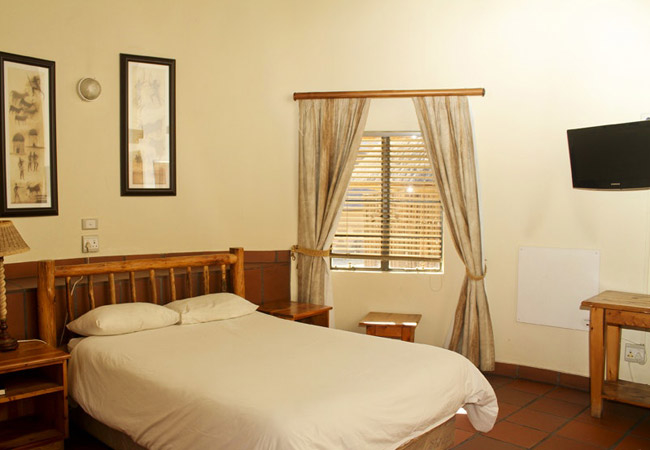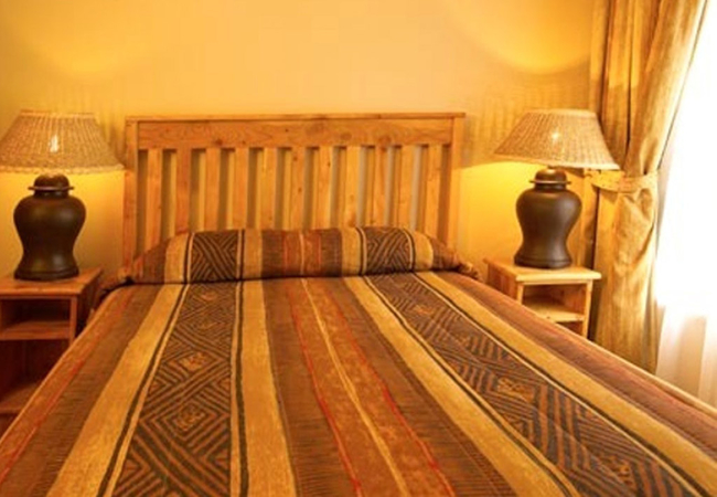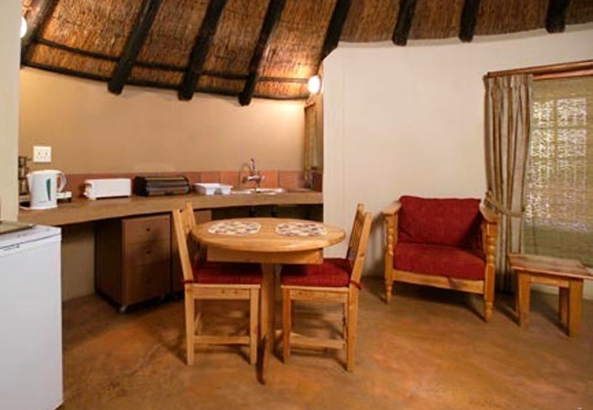 These rondawels are furnished with a double bed and an en-suite bathroom with a shower. There is a 2-seater dining table and chairs, and a kitchenette that is equipped with a bar fridge, 2-plate hotplate, kettle, toaster, and cutlery and crockery.