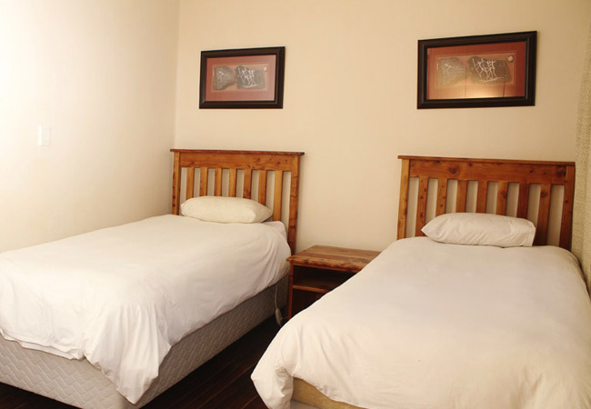 This unit is adapted for guests with mobility impairment with wide doorways, roll-in showers, grab rails, and push levers. This longdawel has two single beds, and an en-suite bathroom with a shower. The living area has a TV with selected DStv channels, a 2-seater dining table and chairs, and a kitchenette that is equipped with a fridge-freezer, a stove and oven, kettle, toaster, and cutlery and crockery. There is also a private outside braai area with a table and chairs.