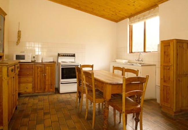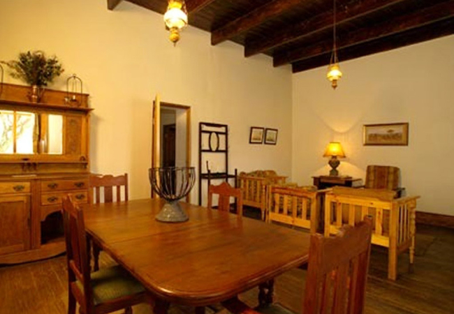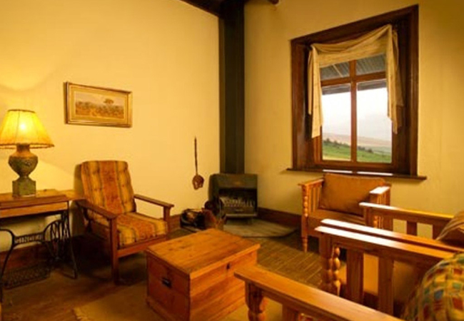 This rustic little farmhouse provides a comfortable setting. The house has two bedrooms, a bathroom, a kitchen, and an open-plan dining and living area. The first bedroom is furnished with a double bed. The second bedroom has three single beds. There is another single bed in the lounge area as well as a fireplace. The kitchen is fully equipped for self-catering. The house gives the visitor a "prehistoric" feeling and that eastern Free State awe while they're relaxing in the surrounding environment.