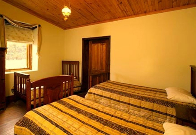 The cottage has three bedrooms, two bathrooms, an open-plan kitchen and living area. The first bedroom is furnished with a double bed, and has an en-suite bathroom with a shower. The second and third bedrooms each have two single beds. The second bathroom has a shower. The kitchen is equipped with a fridge-freezer, a stove and oven, kettle, toaster, and cutlery and crockery. The lounge area boasts a fireplace and a TV with selected DStv channels. Each cottage has braai facilities.