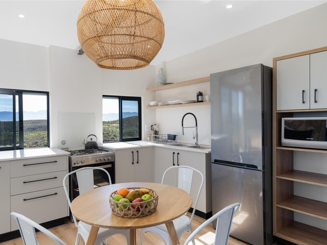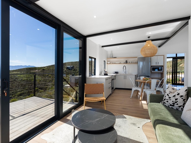 The Eco Cabins are thoughtfully designed for nature lovers, couples, and small families seeking a comfortable retreat without sacrificing proximity to the lodge's social heart. Each cabin features a private deck complete with a KolKol hot tub, an open-plan living and dining area, and a cosy indoor braai. The well-appointed kitchenette is fitted with stone countertops, a four-plate gas stove, and an oven. Two bedrooms offer a queen-size bed and a double bed respectively, dressed in crisp white linen with warm blankets provided for the cooler months. Complimentary Wi-Fi is included. Situated within easy reach of the Eco Terrace and Splash Safari play area, the cabins offer a quiet, immersive base from which to explore the reserve and its surroundings.