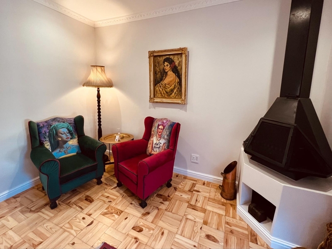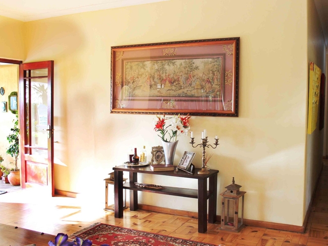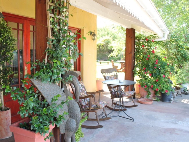 Goblin's Creek, situated in quiet peaceful surroundings, welcomes guests with a sherry on arrival. As you enter the spacious and very comfortable sitting room, huge overstuffed sofas invitingly beckon you to sit cozily with a good book and liqueur in front of a huge roaring log fire in winter. Or, equally inviting in summertime, light and airy with French doors opening onto the large surrounding verandah and garden.