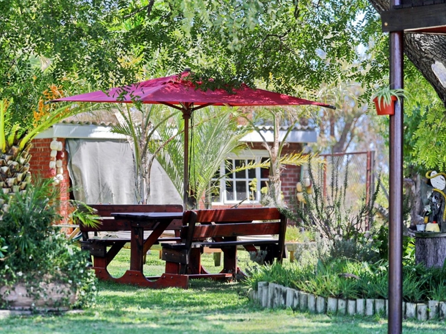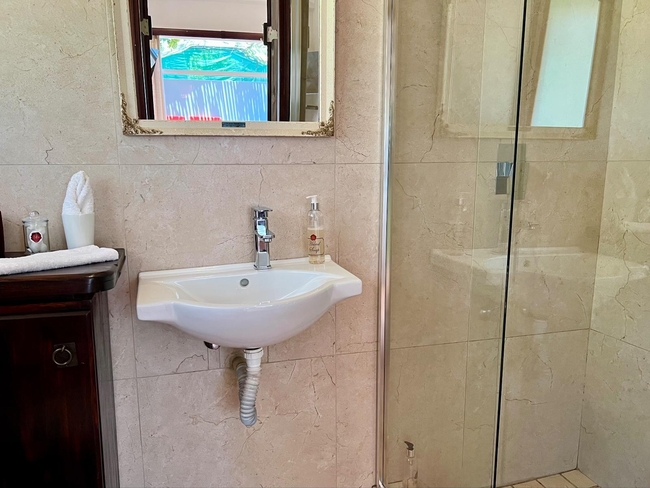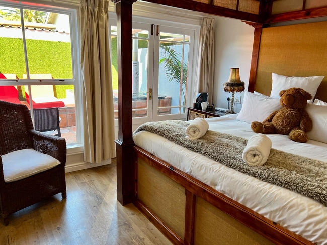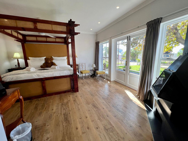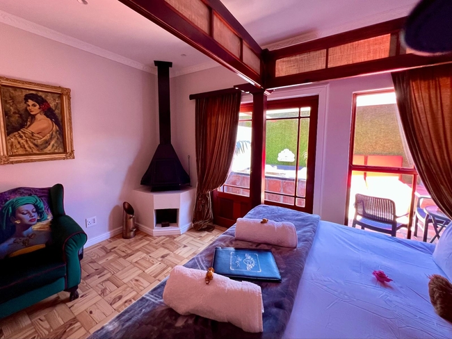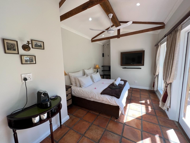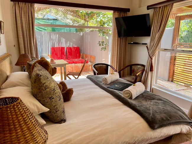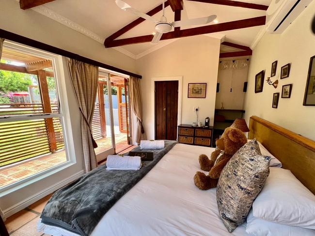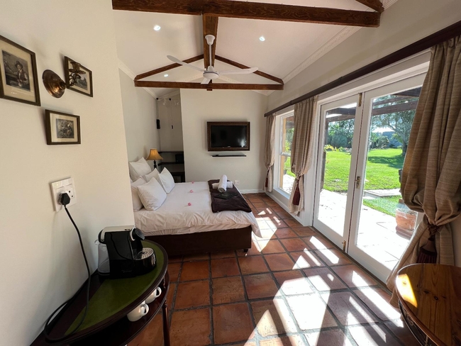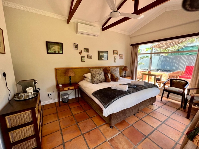 The garden rooms are at the back yard of Goblin's Creek with excess through the main house. This spacious room has a open view over the green garden and our animals. The room has a fridge, coffee machine, TV, fan. The en-suite bathroom has a shower.