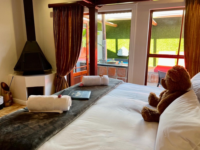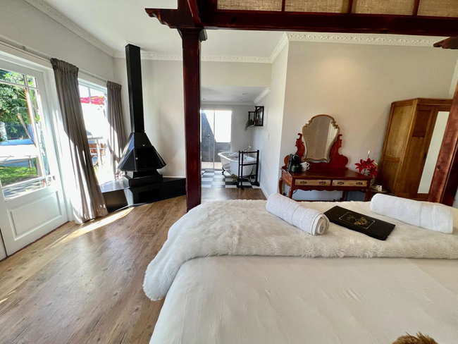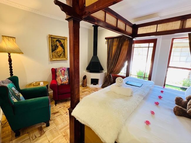 The garden rooms are at the back yard of Goblin's Creek with excess through the main house. Each room has a beautifull view over the green garden and there animals. The room has a fridge, coffee machine, TV and fan. The en-suite bathroom has a shower.