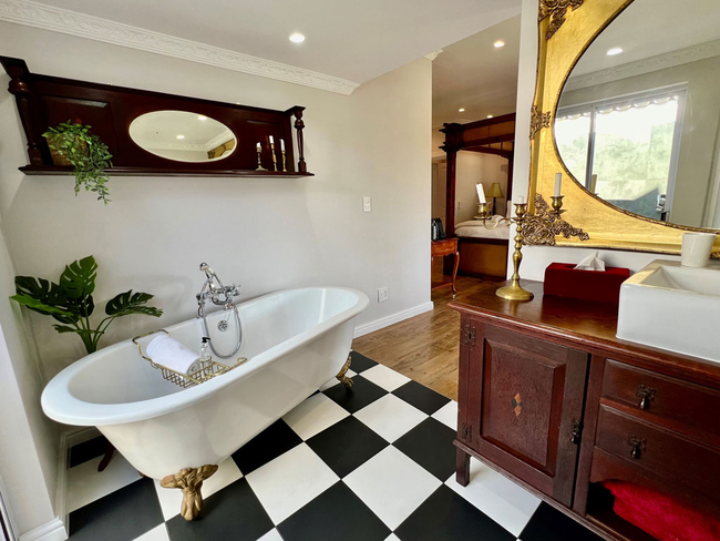 Each bedroom also has its own bathroom with old-fashioned ball and claw bath and lots of candles completes the setting making bedtime and bath time an absolute indulgence! Drift off to sleep to the sound of the waves of the nearby beach and the calling of the seagulls.