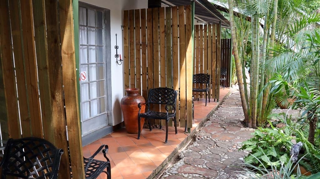 The private en-suite's leads you into a beautiful garden and lapa that overlooks the pool area. This area is private and can sit and enjoy the quiet of the garden while relaxing after a busy day or enjoy an evening swim under the moonlight sky.