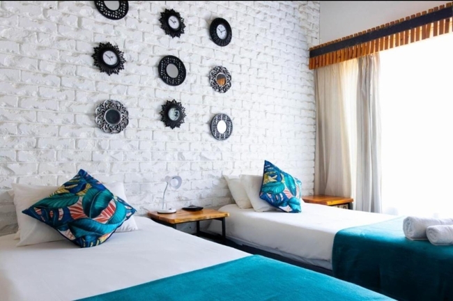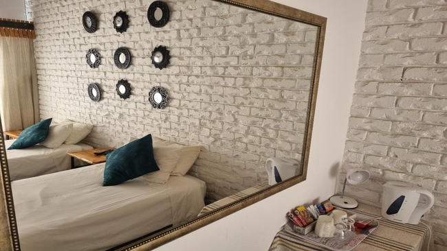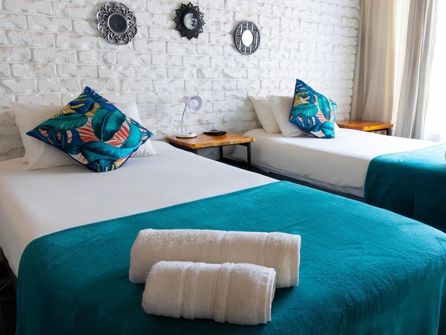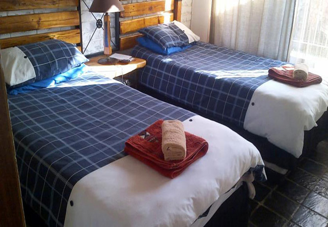 The Twin Room is furnished with twin / two single beds. The en-suite bathroom is equipped with a shower, hand basin and toilet. Other facilities include TV with DStv (Easy View), Tea and coffee tray, bar fridge and complimentary bathroom amenities.