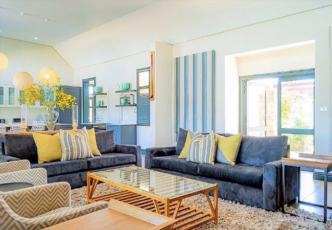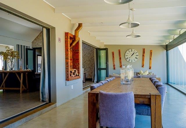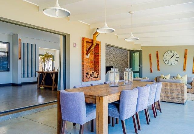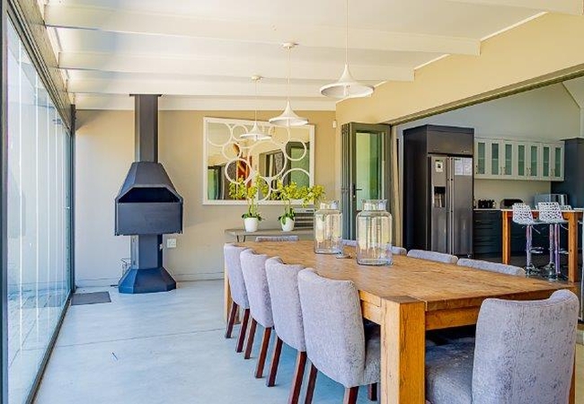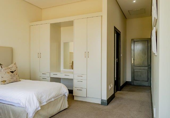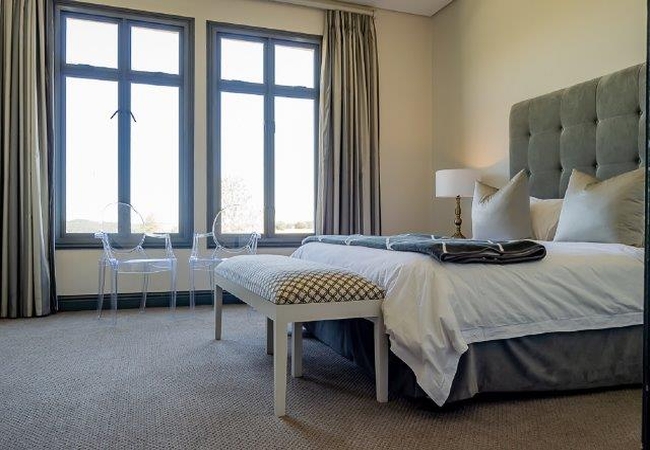 The Self catering house can accommodate up to eight guests in four bedrooms. The first and second bedrooms are each furnished with a King-size bed and the third and fourth bedrooms each have two single beds. All the bedrooms have an en suite bathroom. There is an open plan kitchen, dining and living area as well as an enclosed verandah. The kitchen is fully equipped for self catering and features a laundry area with washing machine, tumble dryer and a dishwasher. There is also a breakfast bar with eight stools. The comfortable TV lounge is equipped with a TV with full DStv and a sound system, as well as an indoor braai fireplace. The enclosed verandah has a lounge area, a 10-seater dining table and lovely views over the golf course. The cottage is serviced daily.