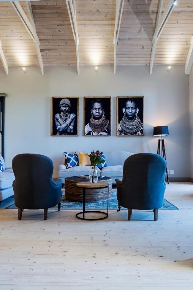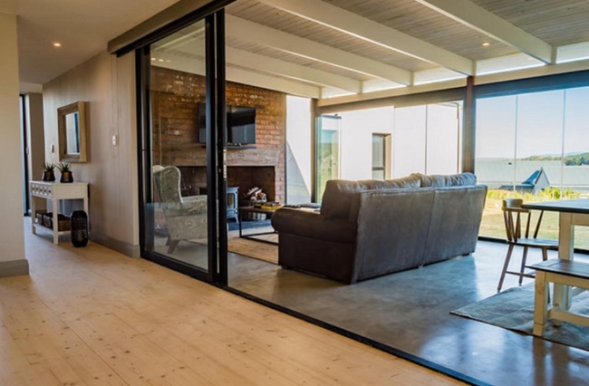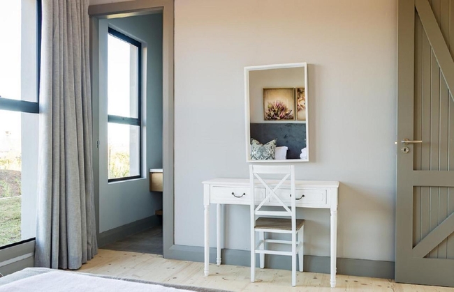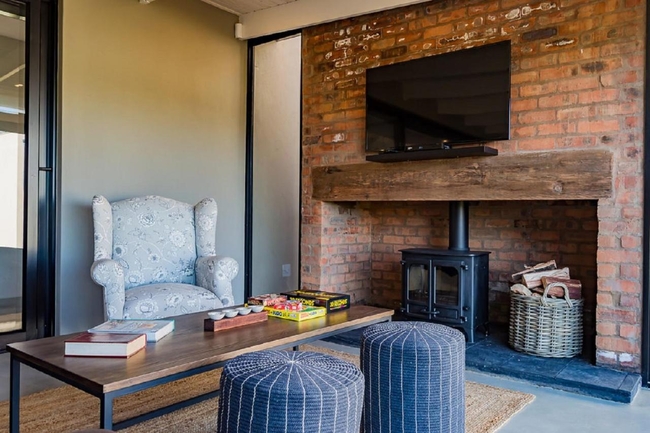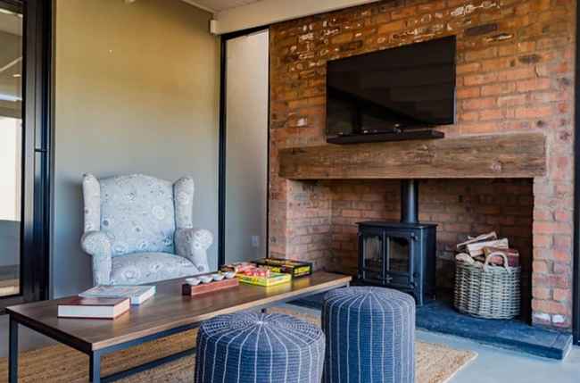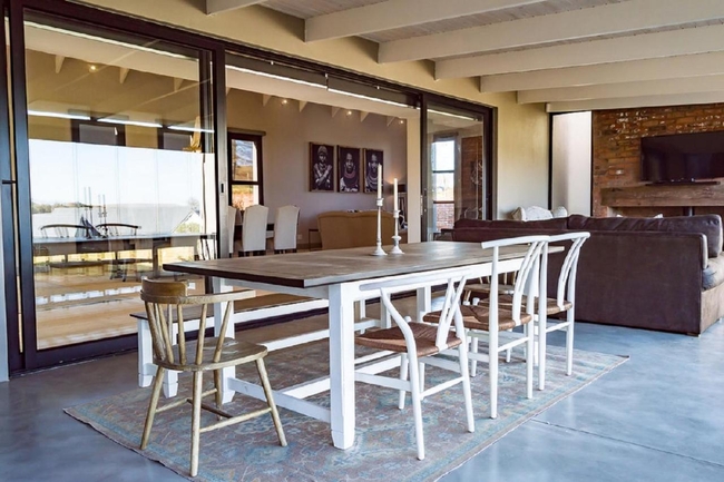 Gowrie Farm House 222 has an open-plan kitchen, dining and living area, an enclosed patio and two guest toilets. The kitchen is well equipped for self catering and the comfortable lounge features a fireplace for the chilly winter months. The dining area is furnished with a 10-seater dining table and chairs and there is additional seating on the enclosed patio which has a TV and built in braai / fireplace.