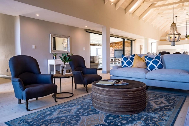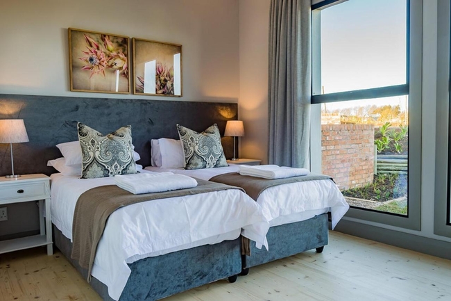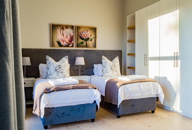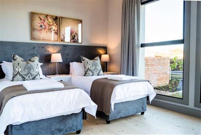 The self catering house can accommodate up to eight guests. There are four bedrooms and four bathrooms. The first and second bedrooms are each furnished with a King-size bed and the third and fourth rooms each have two single beds.