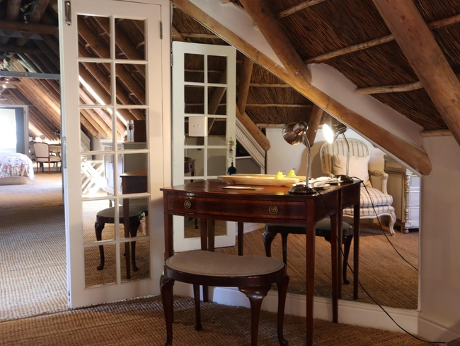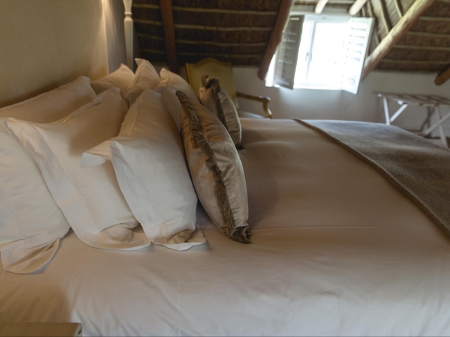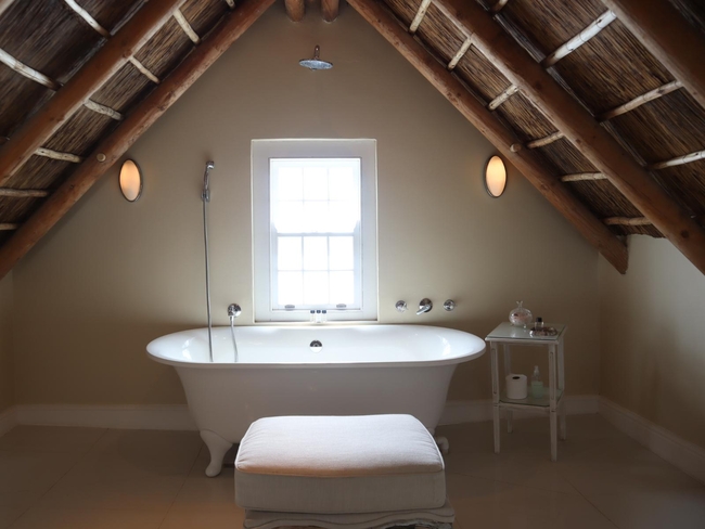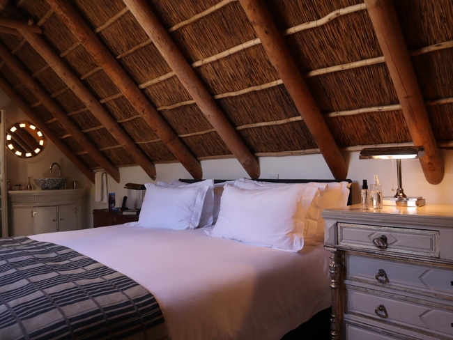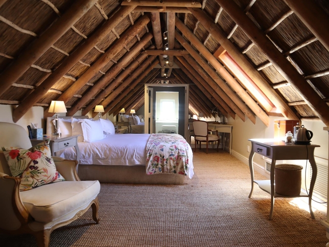 The Standard Loft Room is furnished with a King-size bed (please request twin beds if required). The en-suite bathroom is equipped with twin basins, bathtub with shower overhead and WC. It is under thatched roof and has air-conditioning, under floor heating, heated towel rails, hairdryer, tea and coffee tray, safe, telephone, wireless internet connection, i-pod dock.