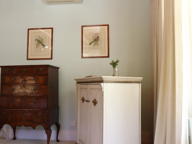 The free-standing thatched stone cottage dating back to around 1707 has been carefully restored and is ideal for honeymoon couples or guests seeking additional privacy. It is furnished with an extra-length King-size bed. The downstairs area consists of an open plan lounge and two bathrooms, one with shower and one with a jet bath. As it stands a short distance from the main house, the cottage offers a private minibar and satellite TV. The wooden staircase leads to the bedroom upstairs with a king size bed. A large, private patio overlooking the horse paddocks and forests completes the experience.