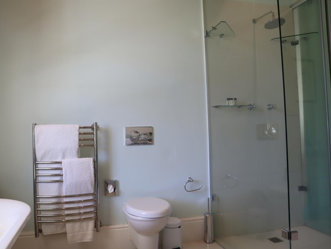 This Luxury Suite has its own private patio. The suite is furnished with an extra length King-size bed (please request twin beds if required). The en-suite bathroom is equipped with twin basins, bathtub, separate shower and WC. Facilities in the Elegant Suite include air-conditioning, under floor heating, heated towel rails, hairdryer, 720 g towels, tea and coffee tray, safe, telephone, wireless internet connection, i-pod dock.