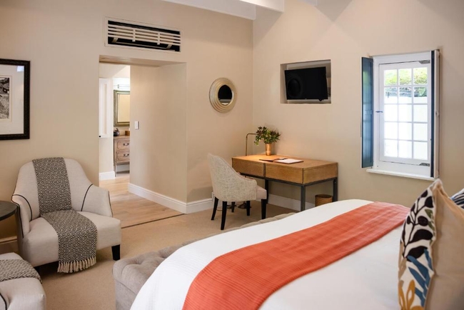 Cabernet Suite is an Industrial chic ground floor room which is a luxurious and spacious suite with en-suite bathroom and amenities. Walks out onto a private garden patio. The room is furnished with a King-size bed 400 thread percale linen, soft lighting. (Room size is 22 square metres). Industrial chic ground floor room, luxurious and spacious ensuite bathroom and amenities. Walks out onto a private garden patio. King/Twin beds, 400 thread percale linen, soft lighting. (Room size - 22 square metres). Facilities include bathrobes, bathroom amenities, turn down service, wake-up calls, Coffee/Tea maker, air conditioning, complimentary high speed internet in room, slippers, converters/ Voltage adaptors, hairdryer, kitchenette, minibar, non-smoking, safe and sitting area.