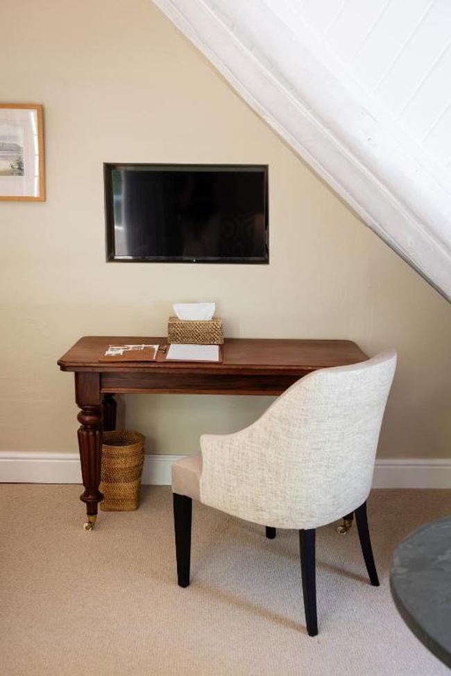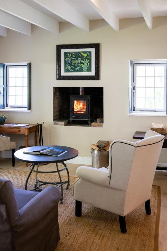 Angels Suite is the Honeymoon Suite with a lovely seating area and fireplace. The suite is furnished with a King-size bed. The luxurious full en-suite bathroom is equipped with a bath, shower, hand basins and toilet. There is a comfortable lounge area and a semi private garden. (Room size is 51 square metres). Facilities include bathrobes, bathroom amenities, turn down service, wake-up calls, Coffee/Tea maker, air conditioning, complimentary high speed internet in room, slippers, converters/ Voltage adaptors, hairdryer, kitchenette, minibar, non-smoking, safe and sitting area.