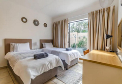 Graysons Two has two bedrooms, the main is furnished with a Queen-size bed and the other bedroom has two single beds. The rooms share a bathroom fitted with a shower, toilet and basin. There is a fully equipped kitchen which includes a full stove and oven, a fridge, coffee and tea facilities as well as crockery, cutlery and glassware. Other room facilities include DStv and Netflix as well as uncapped Wi-Fi. There is a patio, braai area and secure parking.