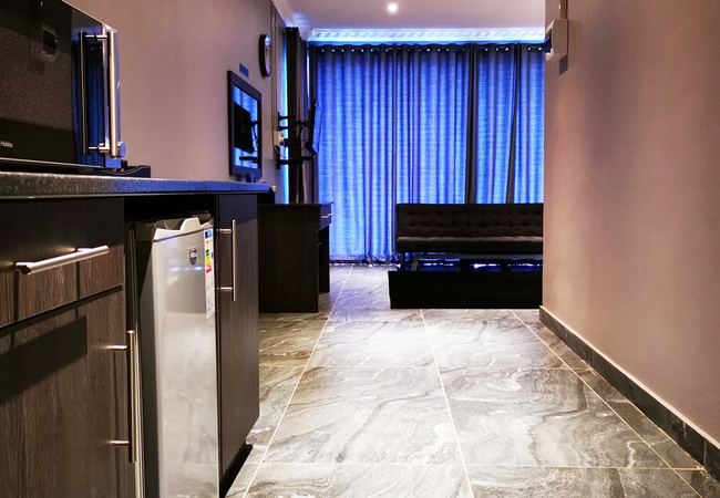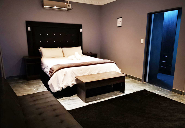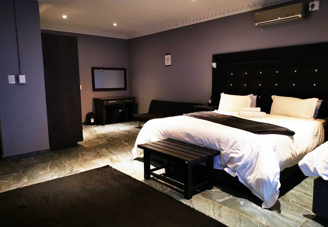 The Premium Queen Room comes with an extra length Queen-size bed and an en-suite bathroom with a rain shower. The room has a mini fridge, kettle, microwave and air-conditioning for your comfort. There is a TV with DStv / Satellite channels and free Wi-Fi.