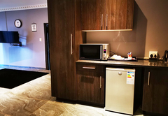 The spacious Premium King Room has an extra length King size bed and an en-suite bathroom with a rain shower. The room has a mini fridge, kettle, microwave and air-conditioning for your comfort. There is a TV with DStv / Satellite channels and free Wi-Fi.