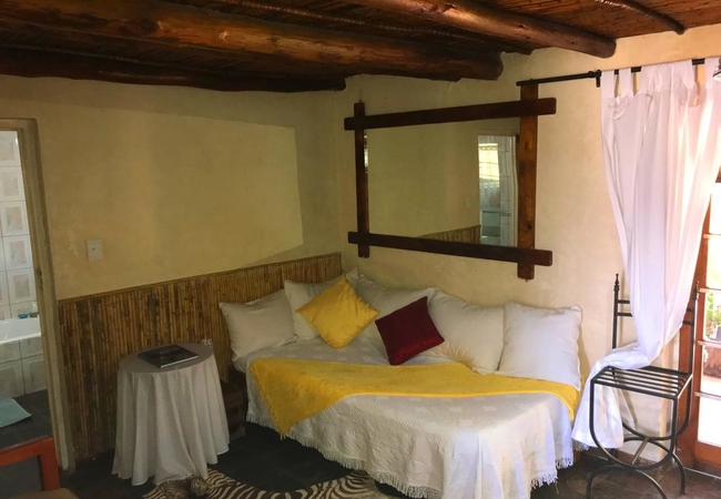 Greystone Cottage is a self catering Exclusive Use Holiday Home with two bedrooms and one bathroom. The main bedroom contains a double bed and the second has two single beds. The shared bathroom makes use of a bath, shower, toilet and a basin. Bed linen and bathroom towels are provided. The kitchen is fully equipped and consists of a bar fridge, stove, oven, microwave, tea / coffee making facilities and glassware. There is also an iron and ironing board available for guest use. The four seater dining table allows for guests to enjoy their meals. The living room has a sleeper couch for the fifth guest and there is also a couch chair to relax on. Outside there is a patio with furniture as well as a garden with a swing and BBQ / braai facilities. Secure parking.