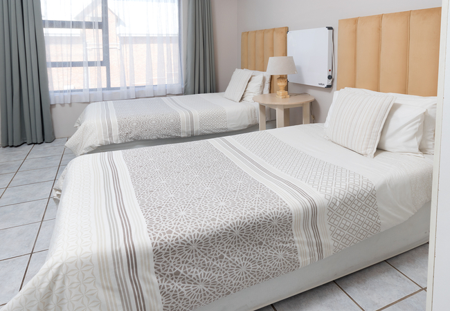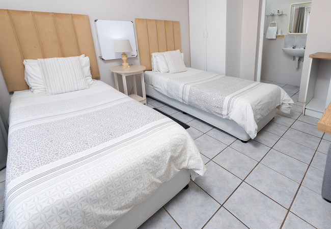 The small Twin Room is upstairs with no lift and is furnished with twin / two single beds. The en-suite bathroom is equipped with a shower, hand basin and WC. Other facilities include TV with selected DSTV channels, Free Wi-Fi, fridge, tea and coffee making facilities.