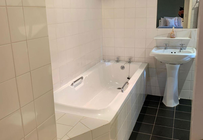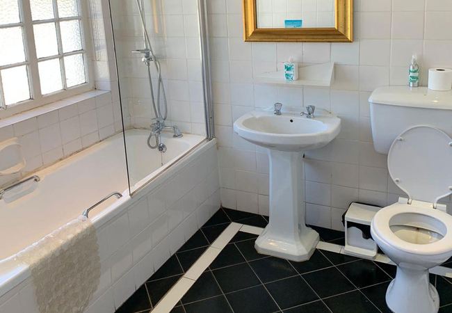 Manor Room 12 is furnished with twin beds and has an en-suite bathroom fitted with a bath, shower, toilet and basin. The room is equipped with a tea and coffee station, telephone, Wi-Fi, work desk for business travellers, wall heater and fan.
