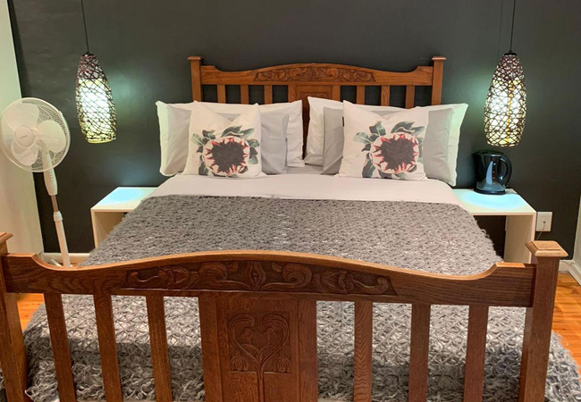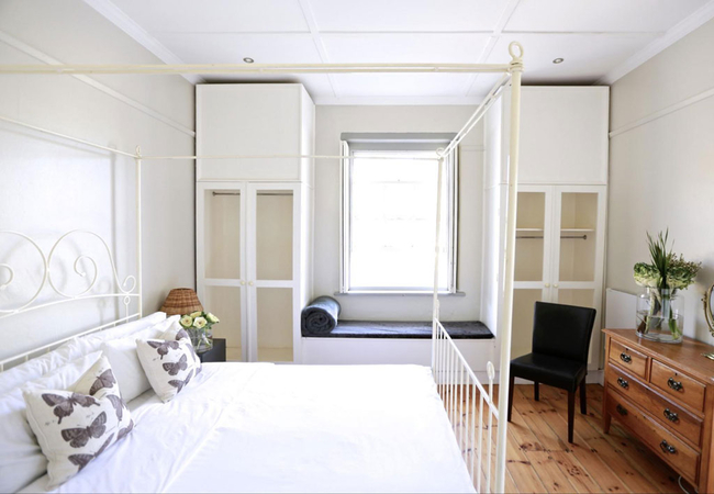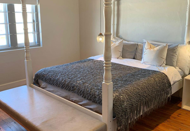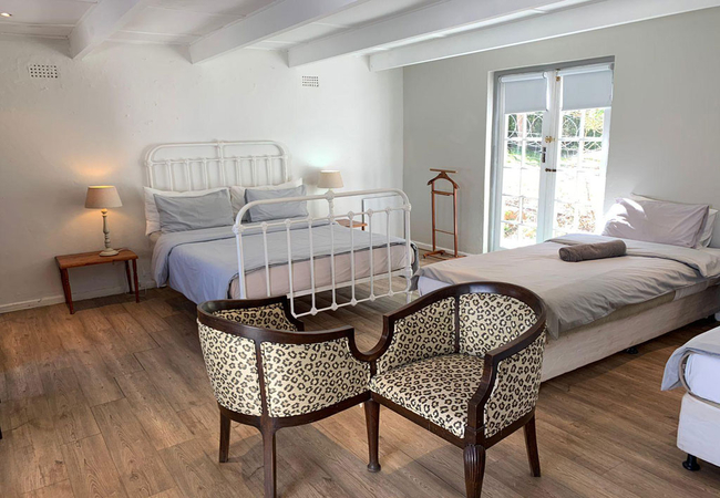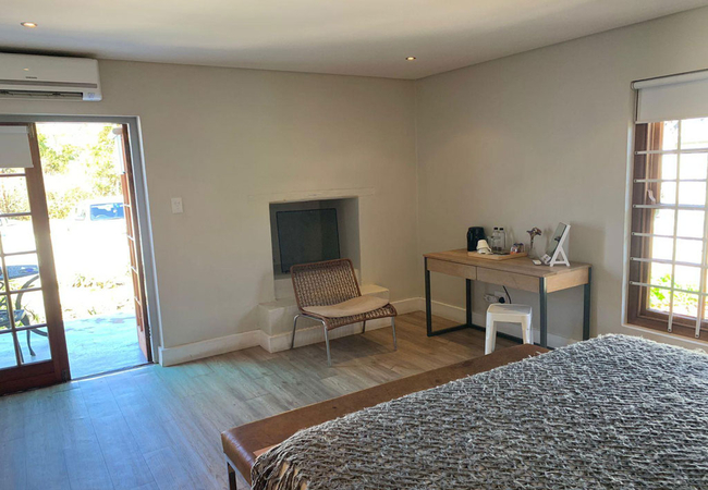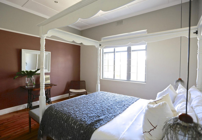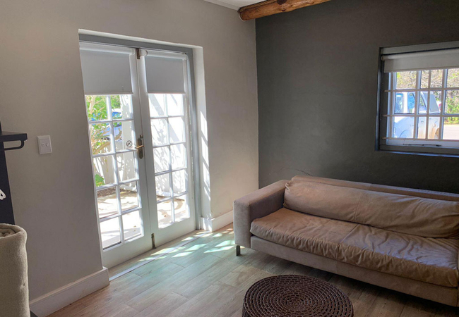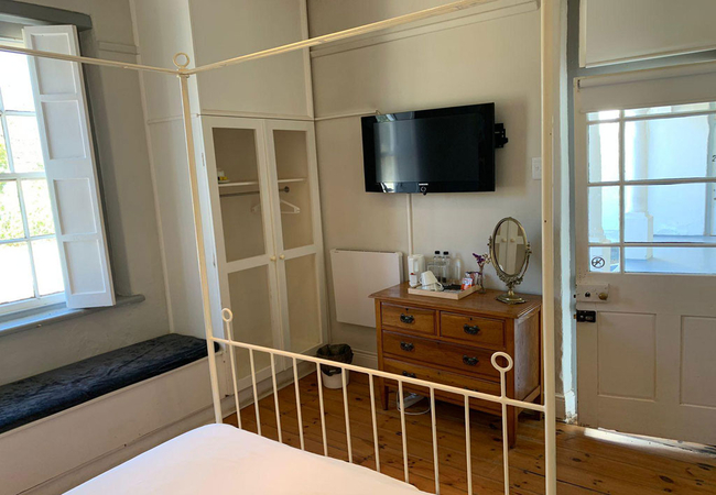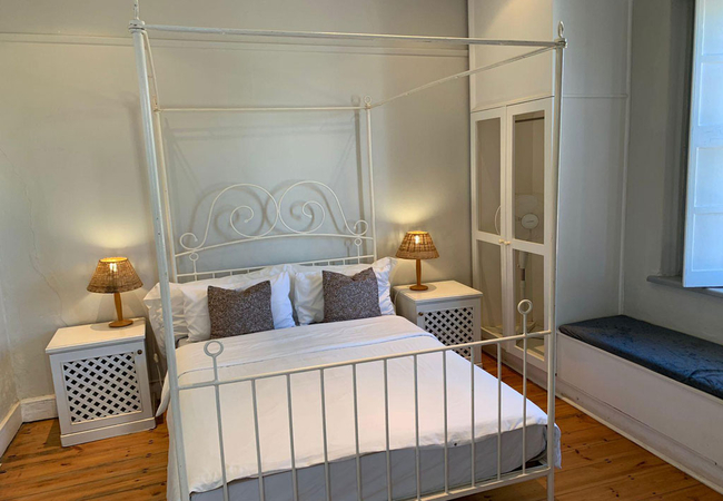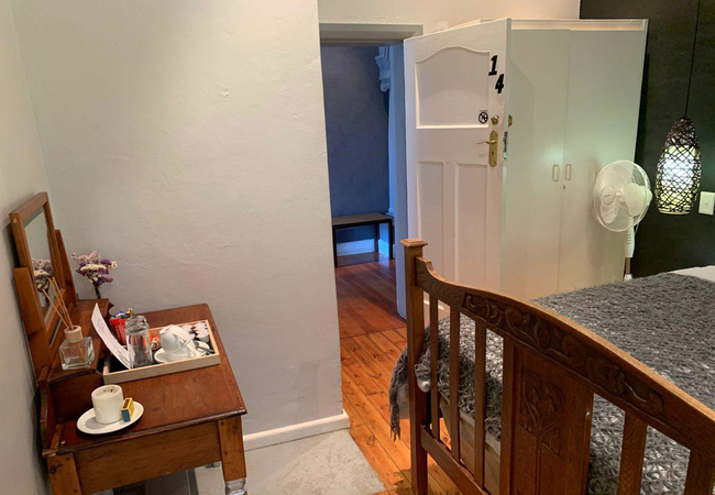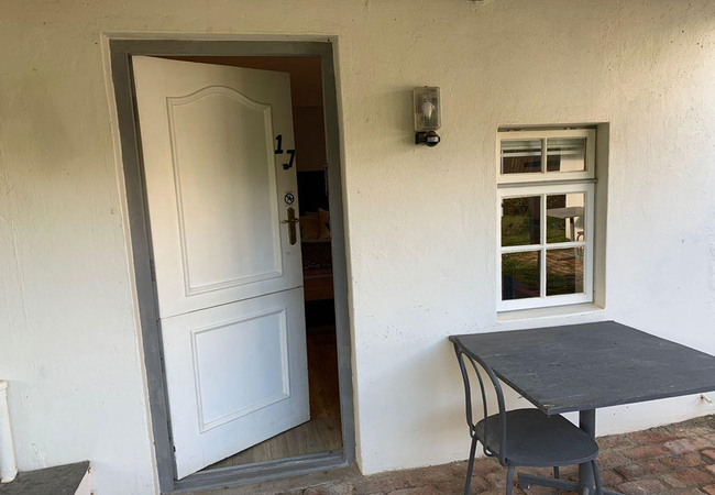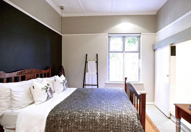 Garden Room 1 is a historic stoep room furnished with a double bed. The en-suite bathroom is fitted with a shower, toilet and basin. The room features a bay window, seating area, tea and coffee station, telephone, Wi-Fi, work desk for business travellers, wall heater and a fan.