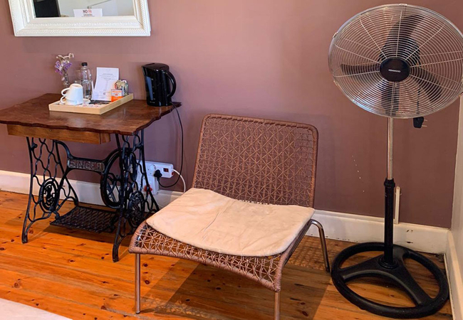 Manor Room 20 is a family room furnished with a double bed, twin beds and an en-suite bathroom fitted with a bath, shower, toilet and basin. The room has a tea and coffee station, telephone, Wi-Fi, work desk, wall heater and fan. This room has two private entrances and a patio.