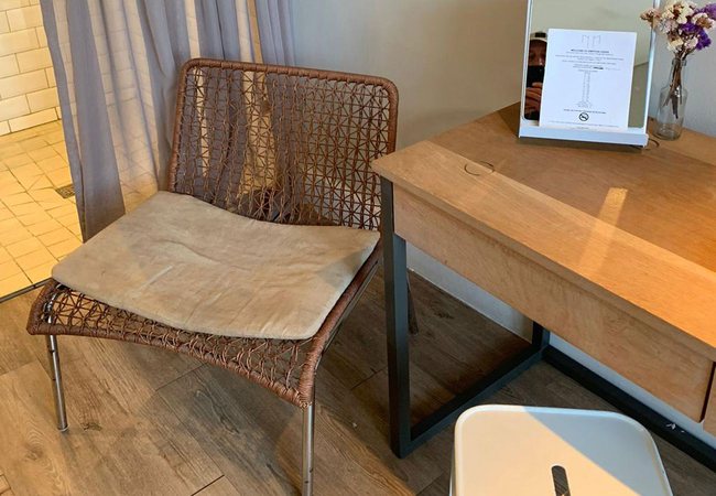 Garden Room 8 is furnished with twin beds and has an open-plan en-suite shower. The room is equipped with tea and coffee station, telephone, Wi-Fi, work desk for business travellers and air-conditioning.