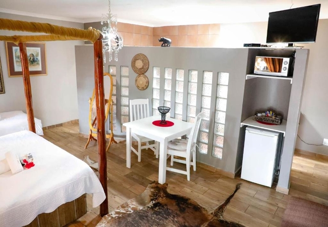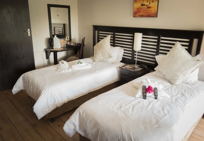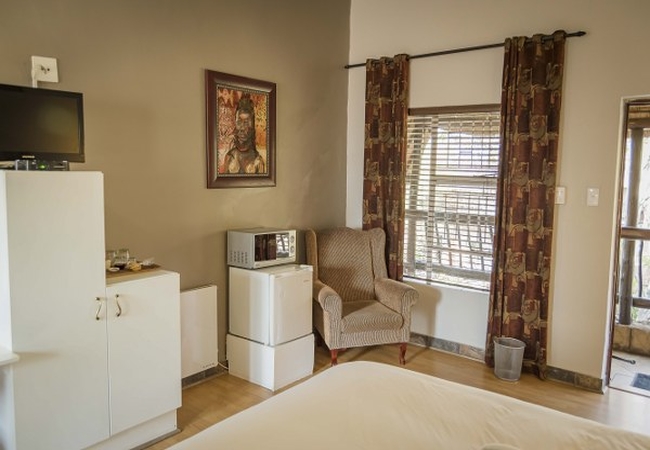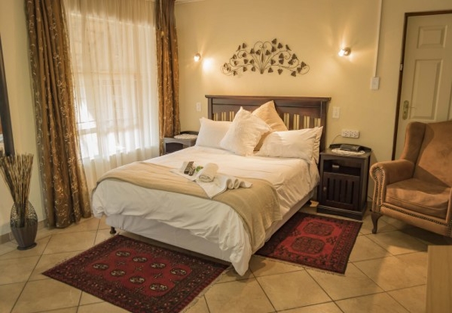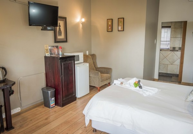 These rooms are comfortably furnished with queen-size beds or three-quarter beds, as well as spacious en-suite bathrooms. Some have Jacuzzi Bath with overhead shower. Each room has a TV with DStv, tea / coffee making facilities, a hairdryer, fan / heater, bed linen and bathroom towels.
