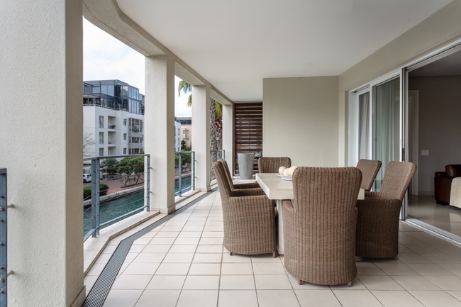 Gulmarn 103 is a spacious, modern two-bedroom holiday apartment that offers a relaxing retreat with stunning views of the marina waterways from both the bedrooms and the lounge area. This luxury apartment in the V&A Waterfront in Cape Town is perfect for two couples or a family of four.