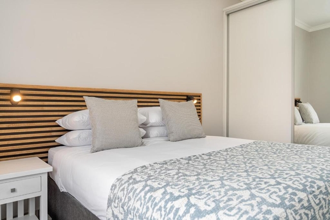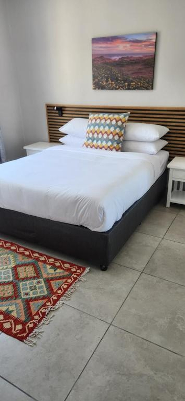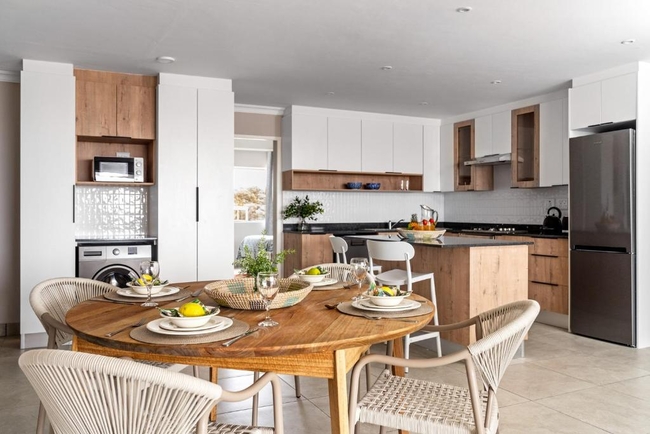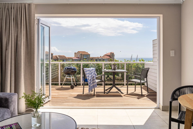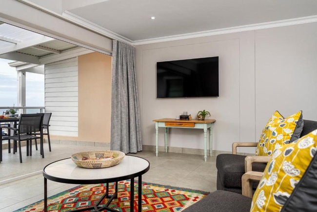 Each apartment offers two bedrooms, both with en-suite bathrooms fitted with showers. The spacious open-plan living area includes a comfortable sitting area with a TV and Netflix, and leads onto a private balcony, patio, or terrace furnished for outdoor dining and relaxation. Depending on the unit, guests can enjoy sea, ocean, or garden views. The fully equipped kitchen includes a refrigerator, oven, microwave, toaster, dishwasher, and coffee- and tea-making facilities, along with a dining table for shared meals. A washing machine, iron, and ironing board are also provided for added convenience. Additional features include free Wi-Fi, a dedicated work desk, in-room safe, daily cleaning service, and braai/barbecue facilities. All units are non-smoking and designed to offer a relaxed and functional coastal retreat.