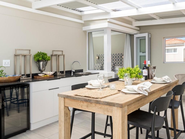 Each penthouse offers two beautifully appointed bedrooms, each with its own en-suite bathroom. The bathrooms include a shower or a separate bath and shower, along with a hairdryer for added convenience. The open-plan living area is stylishly furnished and includes a TV with Netflix, a comfortable sitting area, and a dining table, flowing seamlessly onto a private balcony or terrace. Guests can enjoy stunning sea, ocean, or garden views from these elevated outdoor spaces, which are furnished for both relaxation and alfresco dining. Braai/barbecue facilities are also available. The fully equipped kitchen includes a refrigerator, oven, microwave, toaster, dishwasher, and coffee- and tea-making facilities. A washing machine, iron, and ironing board are provided to ensure a comfortable and convenient stay. Each unit includes free Wi-Fi, a work desk, an in-room safe, and a daily cleaning service. All penthouses are non-smoking and designed to provide a sophisticated coastal escape with every essential detail thoughtfully considered.