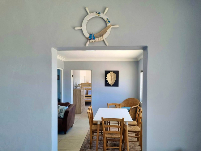 Guests are able to enjoy the indoor braai, ideal for relaxed evenings regardless of the weather. The living area leads out onto a private balcony complete with outdoor dining furniture, providing a pleasant setting to unwind while taking in the surrounding views.