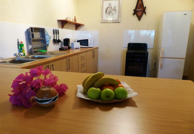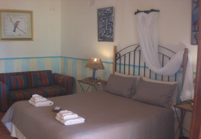This Self-catering unit offers a Queen-size bed and an en-suite bathroom with a shower. Other facilities include coffee and tea-making facilities, braai place, well-equipped kitchenette, microwave, ceiling fan, toiletries, electronic safe, DStv, complimentary chocolates and homemade rusks.