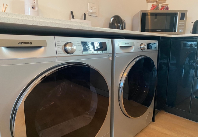 The villa has a well equipped kitchen that boasts a dishwasher, washing machine and tumble dryer for convenience. There is a dining table and the sitting room has comfy seating and has spectacular views.