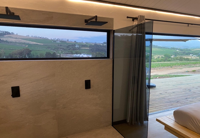 Heaven's View Luxury Villa is a two bedroomed holiday home in Stellenbosch. Each room is furnished with a King-size bed and an en-suite bathroom fitted with a shower, toilet and basin.