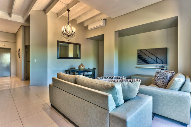 The adjoining lounge and dining area provide comfortable seating for both relaxing and enjoying meals. Entertainment is catered for with a flat-screen television offering selected DStv channels, as well as complimentary Wi-Fi access.