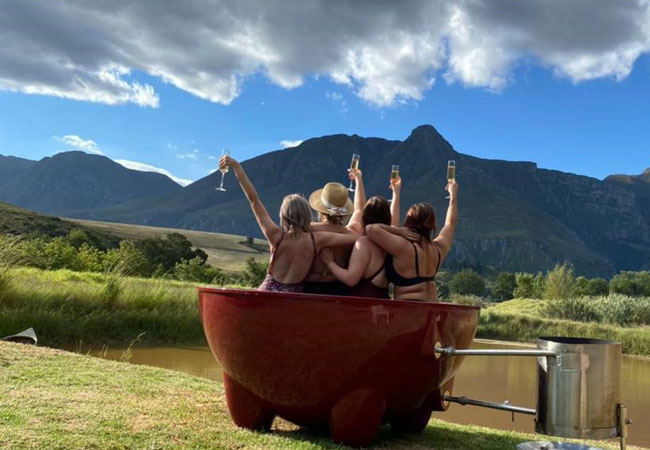 Century old farm cottage made postcard-perfect by the milieu of flowers, horses, green fields, dramatic mountains and adjacent farm dam. Sleeps up to 5 people - Suitable for 4 adults with children. 2 Bedrooms with open plan kitchen and living area. All cottages have indoor fireplaces, a full fridge freezer, full Wi-fi and an outdoor private bbq area. The cottages can be booked with hot tubs at extra charge.