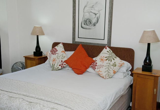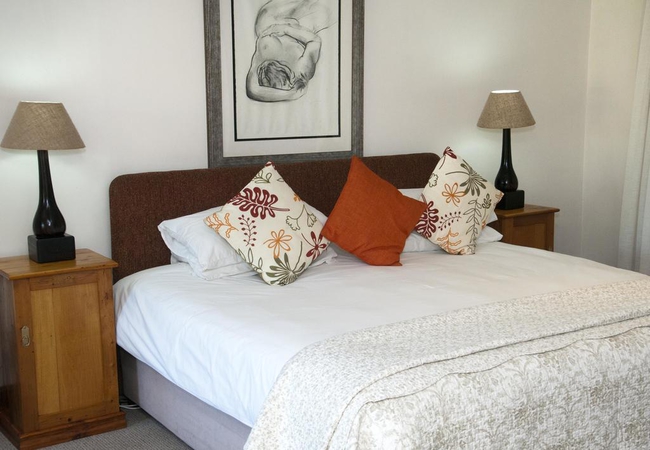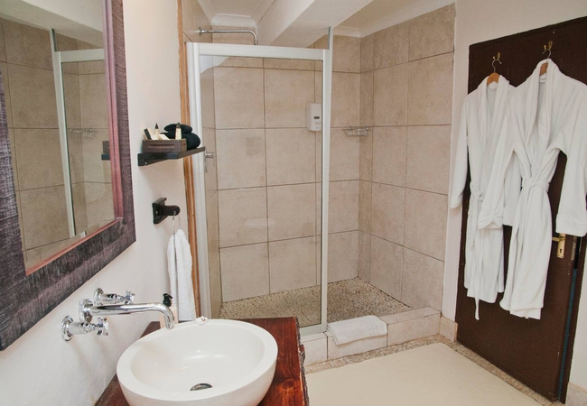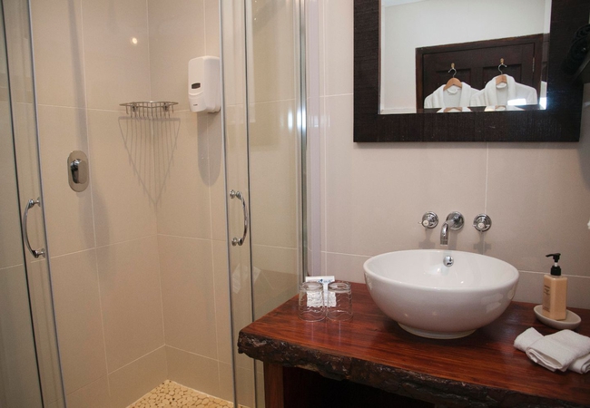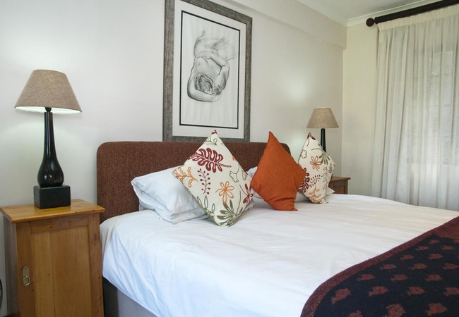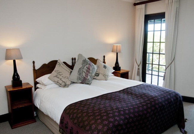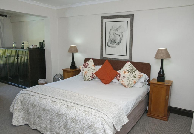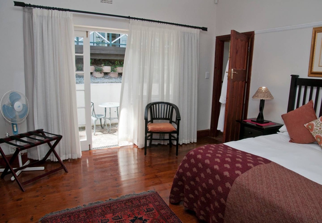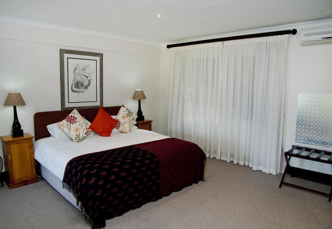 Comfortable and well appointed room furnished with a Queen-size bed and an en-suite bathroom fitted with a shower, toilet and basin. This room is located in the Main House. Facilities available include mini bar, DStv, tea/coffee tray, mini safe, air conditioning and gowns. Free fibre internet and gym facilities.