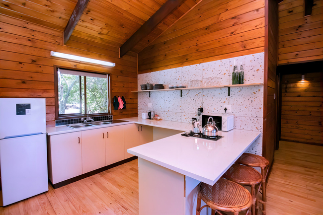 The kitchens in the cabins are equipped with a fridge, 2 plate stove, microwave oven, kettle, toaster, cutlery and crockery. We provide all linen and towels. Wood can be purchased on site for fire places and braais. Our retreat can sleep 70 people and our restaurant can cater for up to 70 people.