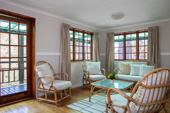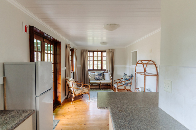 The place offered absolute serenity.I woke up to the sound of birds and to the beautiful scene of wild flowers.I don't know the relation of "man and nature at peace" but I definitely felt the harmony that propelled me to believe more that there is a force beyond ourselves.Never have I been in a place that felt so spiritual without any display of spirituality.That place was simply magical. On our four day stay we had beautiful sunny days and misty wet rainy days. Nestled on the foot of the Outeniqua Pass whenever we went out on an excursion we were happy to retreat to this haven. The host was so gracious I appreciated the call to arrange for us to head straight to our cabin as we arrived late in the evening.When we had a plumbing incident it was attended promptly.It was a relief that as much as the establishment is self catering you are not totally left to your own devices. The place will be excellent when they move to gas stove instead of electricity. I was not happy to waste my time in the kitchen. Ya that's my review hope they live up to expectation and not drop the standard.