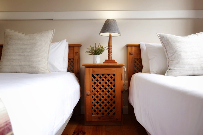 Our 4-Sleeper Cabins have 2 bedrooms with a double bed in one bedroom, and two single beds in the other bedroom. There is a shared bathroom with a shower. These cabins have an open-plan kitchen and living area, and the kitchen is equipped with a 2-plate mini stove-and-oven, a microwave, a kettle, a fridge, cooking utensils, and crockery and cutlery. For those lovely summer evenings, outside braai areas are available. Please note that our cabins do not have TV or Wi-Fi available.