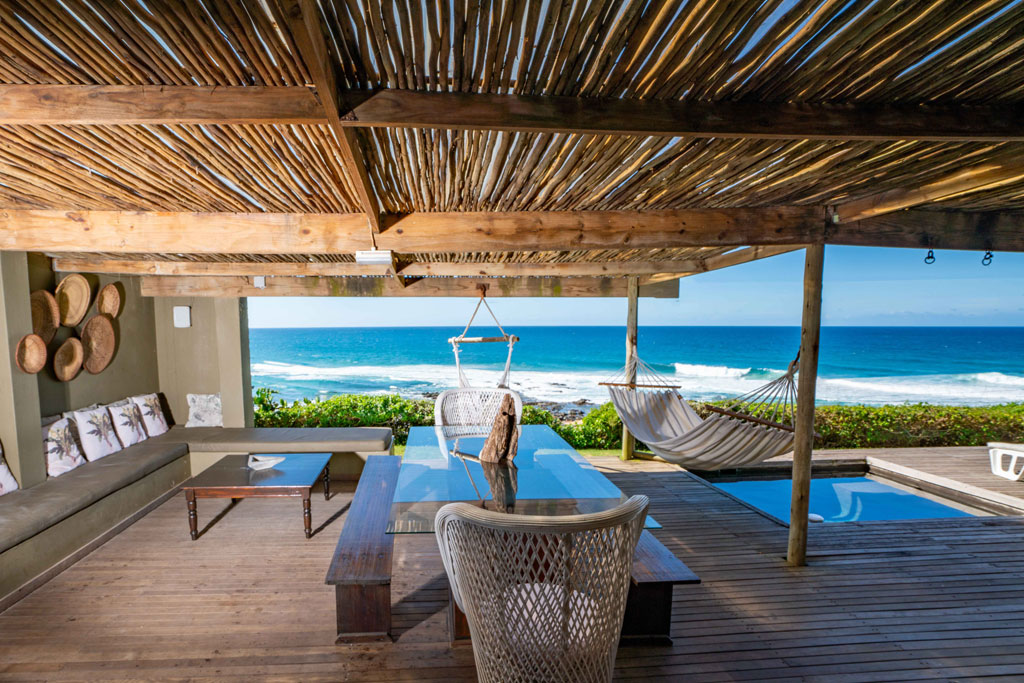 Highrocks Beach House is majestically positioned atop Widenham Point, offering guests panoramic views of KwaZulu-Natal’s breathtaking South Coast that extend as far as the eye can see. Just a leisurely 45-minute drive from Durban, visitors are immediately greeted by expansive ocean vistas as they enter the open lounge, setting the stage for a serene and luxurious retreat. This bespoke 5-bedroom beach house promises an unforgettable stay, combining style and comfort in a unique coastal setting. Every detail of this property has been thoughtfully designed for both relaxation and enjoyment. The tastefully furnished en-suite rooms, four of which are air-conditioned, offer a peaceful haven after a day of adventure. The state-of-the-art kitchen, featuring elegant Caesarstone countertops, strikes the perfect balance between luxury and functionality, making it ideal for both cooking and entertaining. The living room is a haven of comfort, with plush seating and a smart TV, creating a welcoming space to unwind and enjoy your favorite shows. Step outside to experience Highrocks' remarkable covered outdoor area. It’s the perfect place to relax, with two hammocks offering a quiet spot to reflect, and a deep, solar-heated plunge pool complete with a U-shaped seat – the ideal place to cool off or spend time with family and friends. The outdoor space also features a spacious ten-seater dining table, complemented by comfortable seating and deck chairs, creating an inviting area for leisurely meals and memorable gatherings. For added comfort, a newly added fire pit, strategically positioned to block the east winds, ensures peaceful evenings even when the breeze picks up. To complete the authentic South Coast experience, there’s a built-in charcoal braai, perfect for outdoor cooking and enjoying delicious meals while taking in the scenic views. A stay at Highrocks Beach House offers guests an exclusive experience with full, private access to the entire property throughout their stay. This ensures complete privacy, allowing guests to fully enjoy all the amenities at their leisure, making it the perfect coastal retreat.