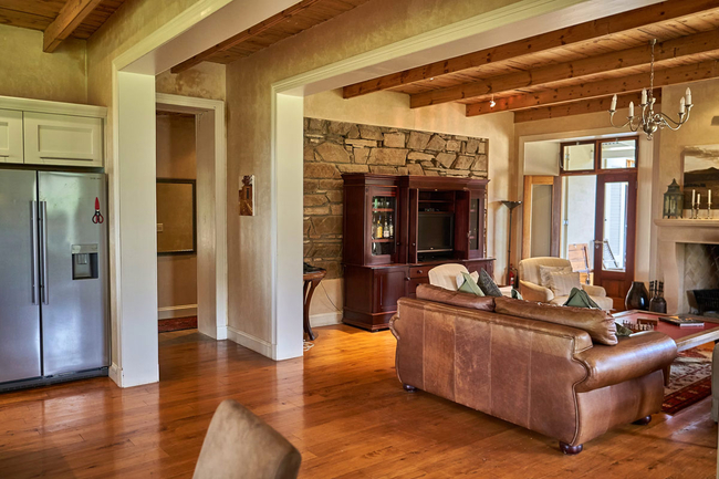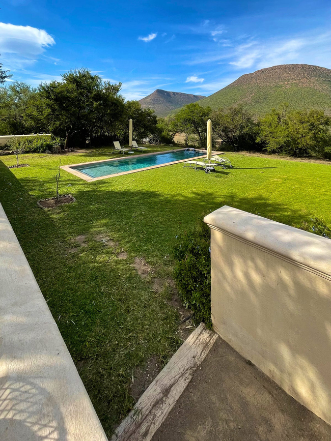 Hillside Manor is a holiday home on a game reserve in Graaff Reinet. The manor sleep six guests and has three rooms, two are furnished with a King-size bed and one is furnished with twin beds. Each room has an en-suite bathroom fitted with a shower, toilet and basin and one of them has a bath as well. The living area is a great place to relax and has plenty of seating and a fireplace. There is a TV with satellite channels and Wi-Fi. The manor has a swimming pool and a private safari vehicle with ranger. Given that the Hillside Manor property is not walled, it is not uncommon to entertain surprise guests courtesy of Mother Nature.