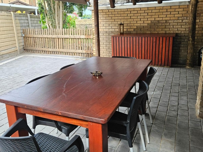 This beautiful 3-bedroom holiday apartment offers a comfortable and spacious stay in a secure complex. The unit features 2.5 bathrooms, a large open-plan lounge, dining area, and fully equipped kitchen, along with braai facilities. Guests can enjoy a range of amenities including air conditioning, Wi-Fi, TV with DSTV and streaming services, a washing machine, and a variety of kitchen appliances. The property also boasts outdoor dining areas, patio seating, and access to a swimming pool, making it ideal for a relaxing getaway.