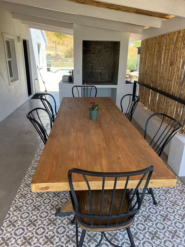 Guests can enjoy outdoor living on the spacious patio, which includes a built-in braai and a dining area perfect for leisurely meals under the open sky. With a sparkling pool, tranquil surroundings, and stylish interiors, Hilltop House is a superb choice for a memorable stay in Riebeek Kasteel.