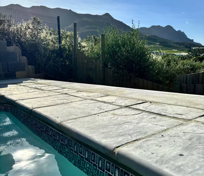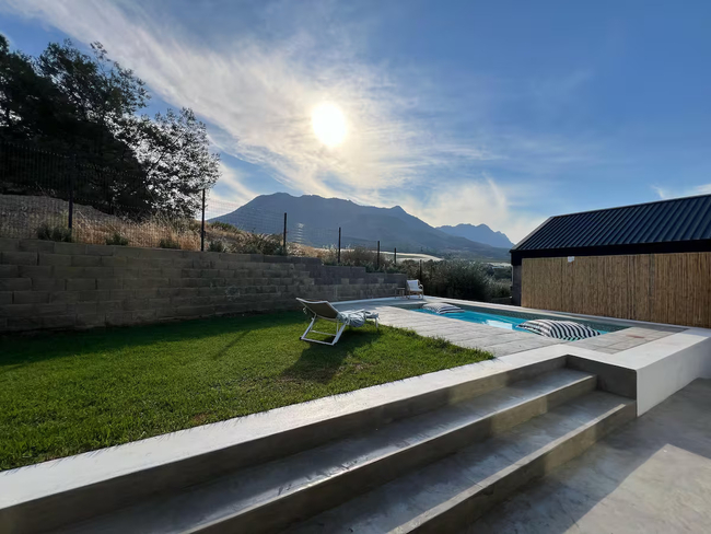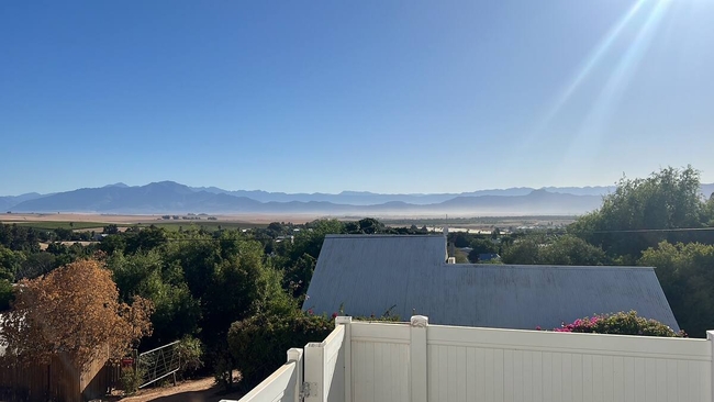 Designed for families or small groups seeking comfort and space, the house comprises three generously proportioned bedrooms, each with its own en-suite bathroom. Two of the bedrooms are fitted with king-size beds and en-suite bathrooms featuring a shower, toilet, and basin. The third bedroom offers two single beds and an en-suite bathroom with a shower. The fully equipped kitchen caters to all self-catering needs, featuring a stove, oven, fridge-freezer, microwave, as well as a complete range of crockery and cutlery. The open-plan living area includes a dining table, a cosy lounge suite, and an inviting indoor fireplace, ideal for cooler evenings. Guests can enjoy outdoor living on the spacious patio, which includes a built-in braai and a dining area perfect for leisurely meals under the open sky. With a sparkling pool, tranquil surroundings, and stylish interiors, Hilltop House is a superb choice for a memorable stay in Riebeek Kasteel.